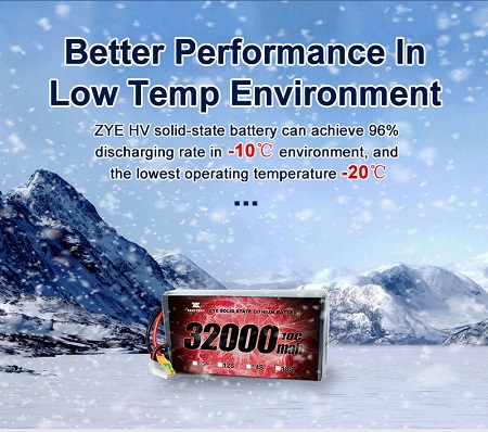 از آنجا که درجه حرارت زیر 20 درجه سانتیگراد (68 درجه فارنهایت) کاهش می یابد ، عملکرد باتری شروع به تخریب می کند. در دمای 0 درجه سانتیگراد (32 درجه فارنهایت) ، بسیاری از باتری های هواپیماهای بدون سرنشین فقط 70-80 ٪ از ظرفیت رتبه خود را تحویل می دهند. این کاهش در دمای زیرزمینی حتی بیشتر می شود ، در حالی که برخی از باتری ها کمتر از 50 ٪ از ظرفیت طبیعی خود را در دمای 20 درجه سانتیگراد (-4 درجه فارنهایت) فراهم می کنند.
